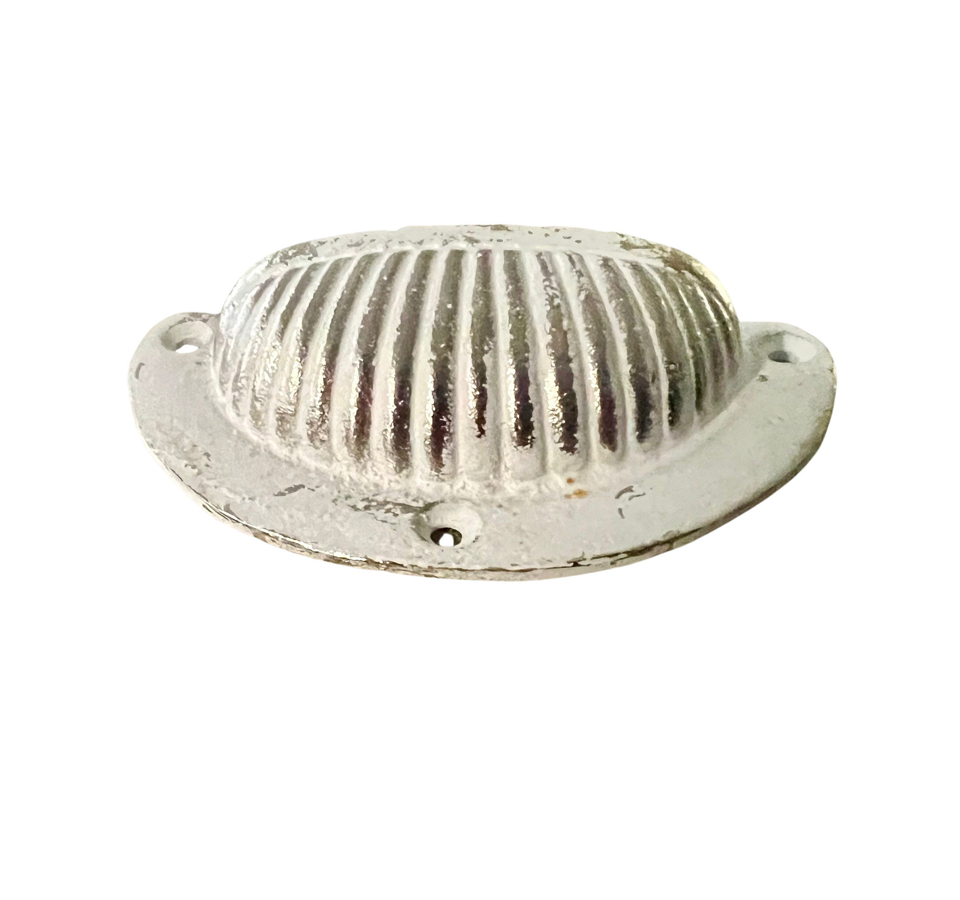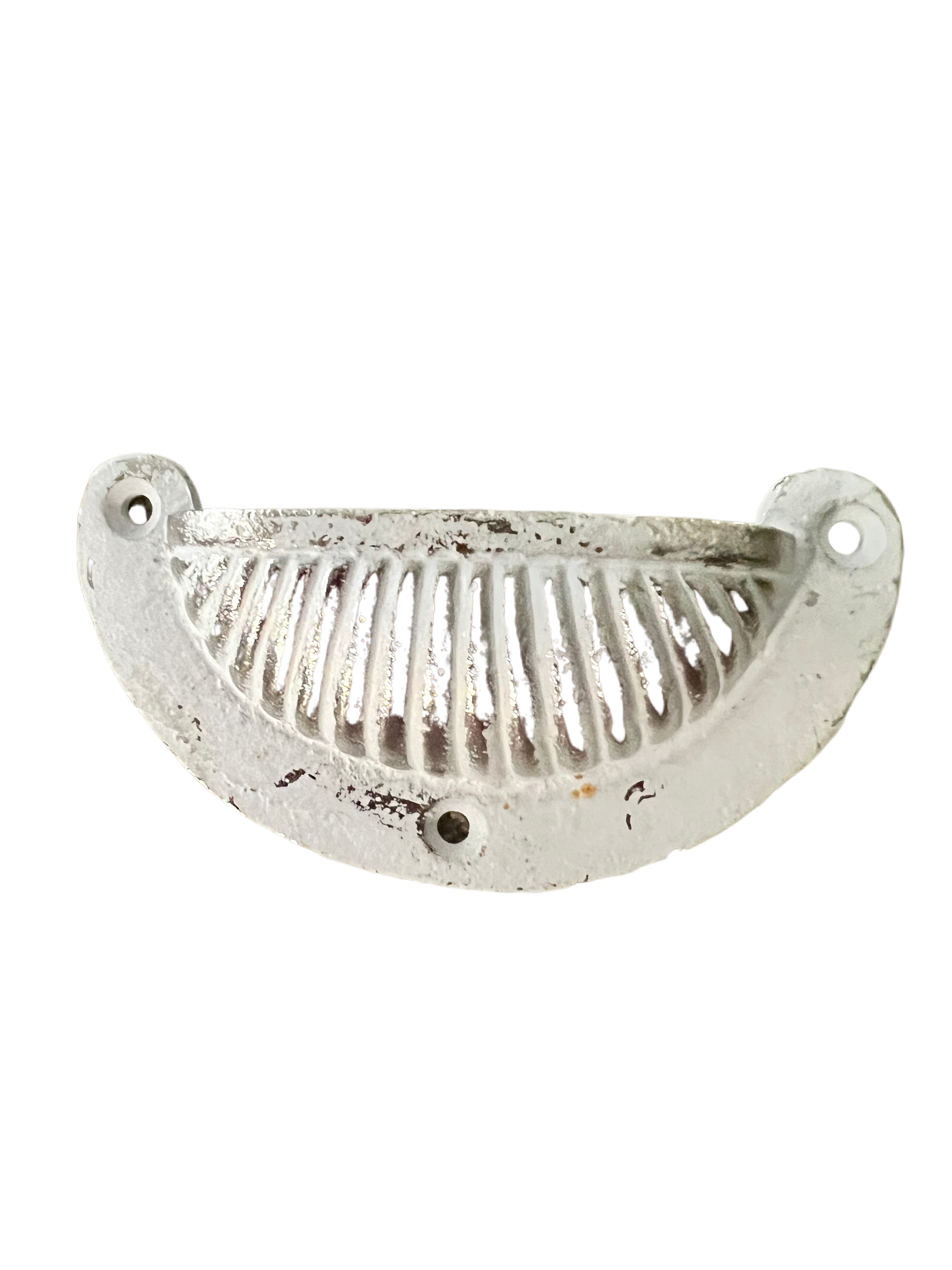 Lovely solid meta whitel drawer pulls, highlighted with gold accents. These would look great on any surface/colours.
