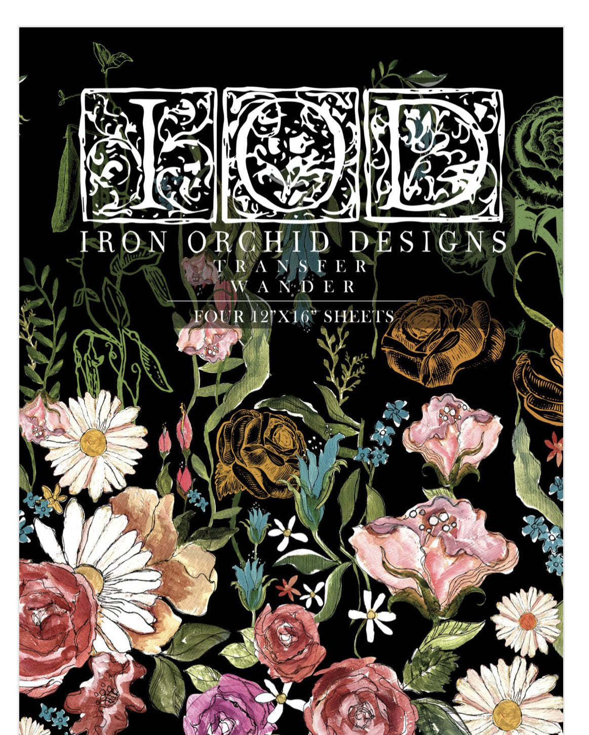 IOD Transfer Pad containing 4 sheets of rub on decor transfers from the Iron Orchid Design range.