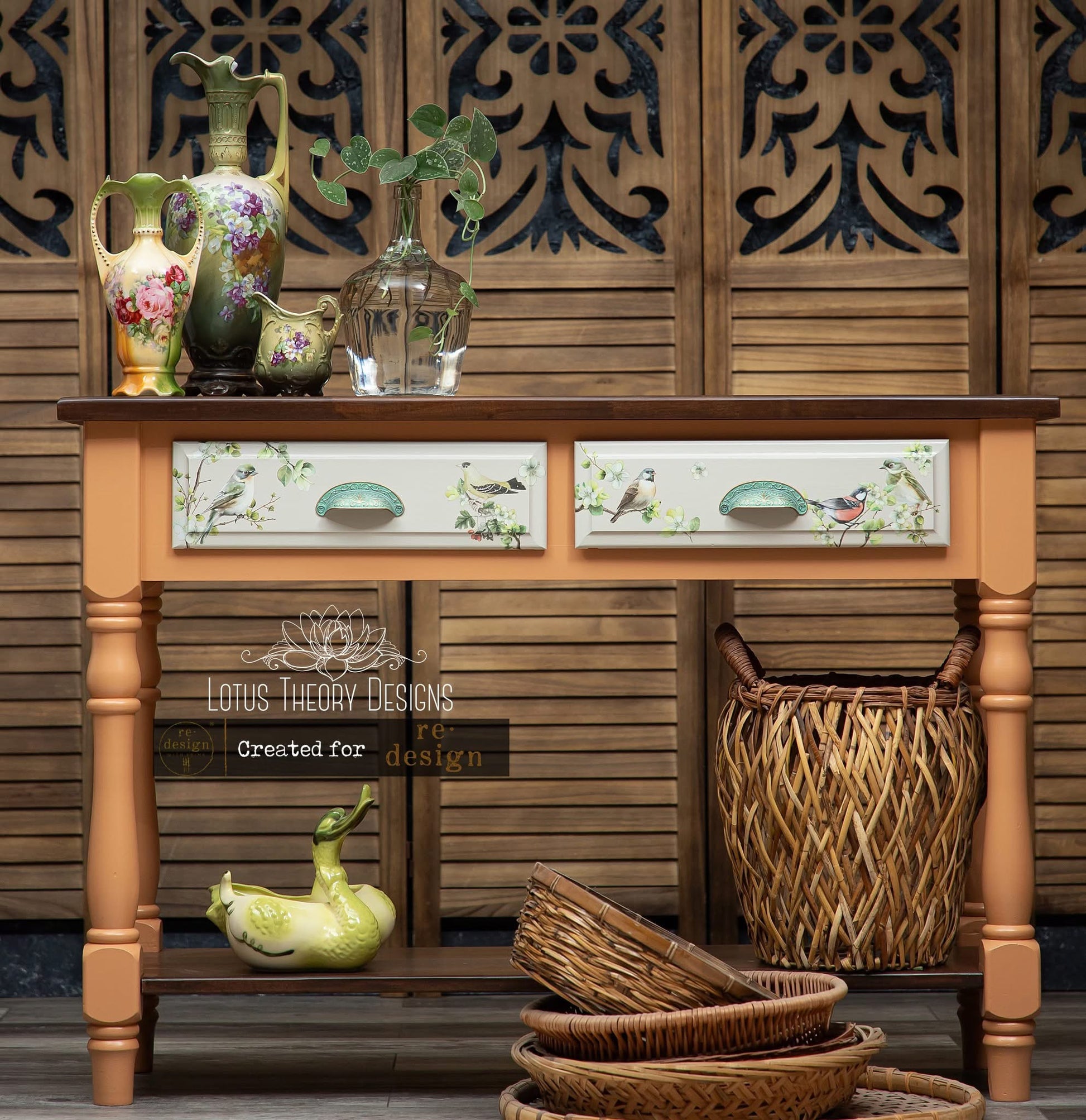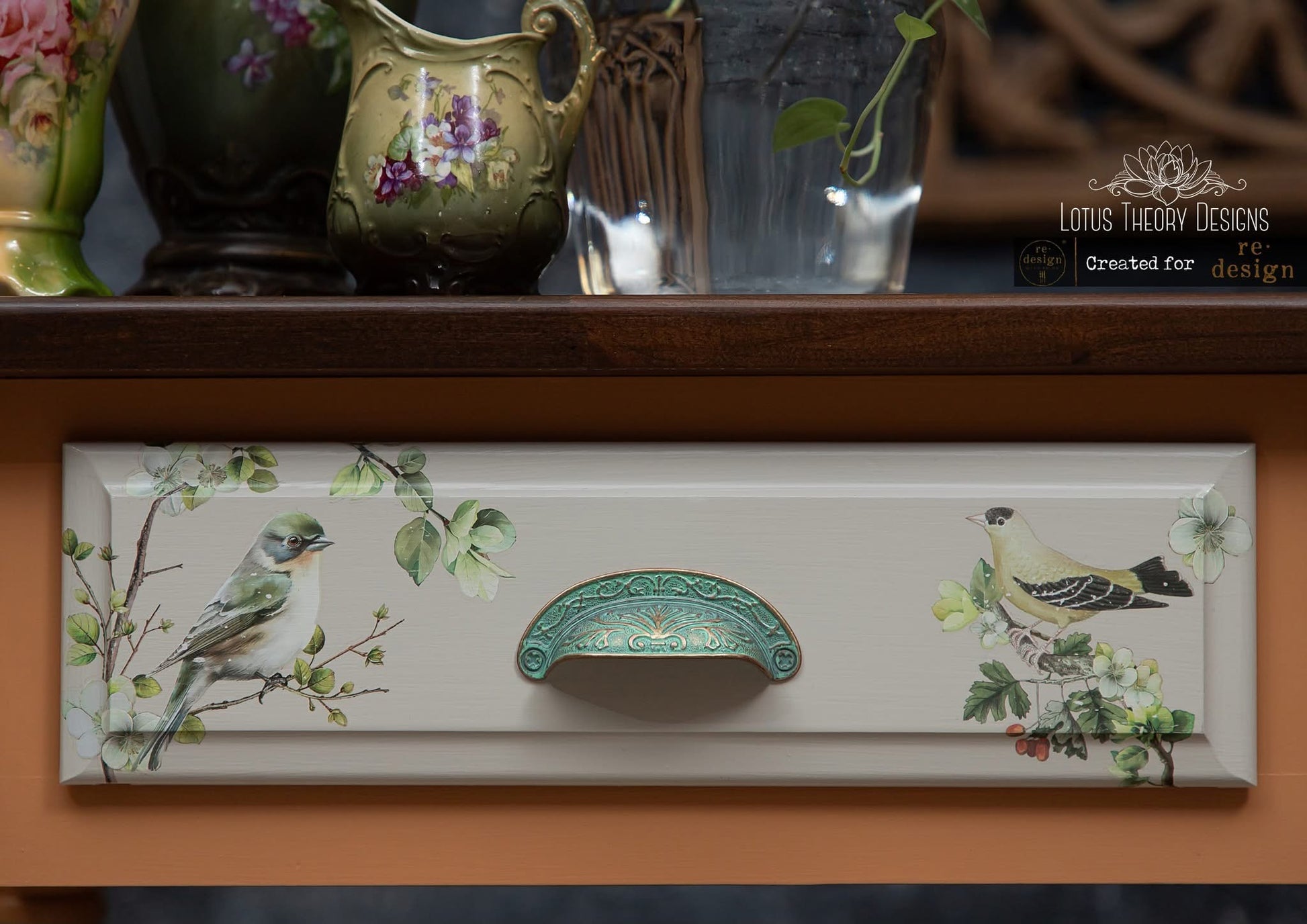 Imagine a charming green dresser with tiny birds and blossoms scattered gracefully, or a set of nesting tables transformed into a garden-inspired masterpiece. With its soft colors and natural details, this transfer adds a touch of serenity to any space. Includes three 6”x12 unique sheets.