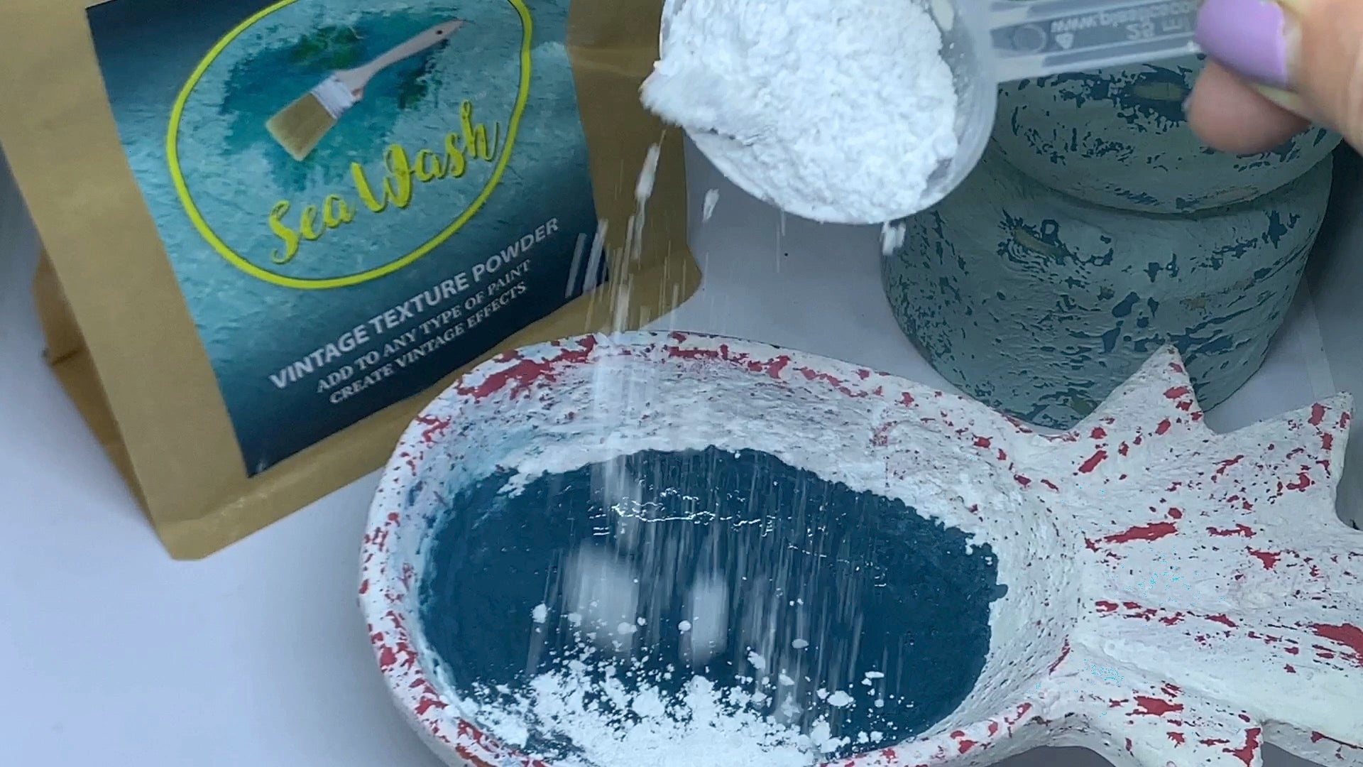 -Simply mix SeaWash® Vintage powder into Newton's Chalk Finish Paint, Newton's Wall paints or any type/brand of paint.