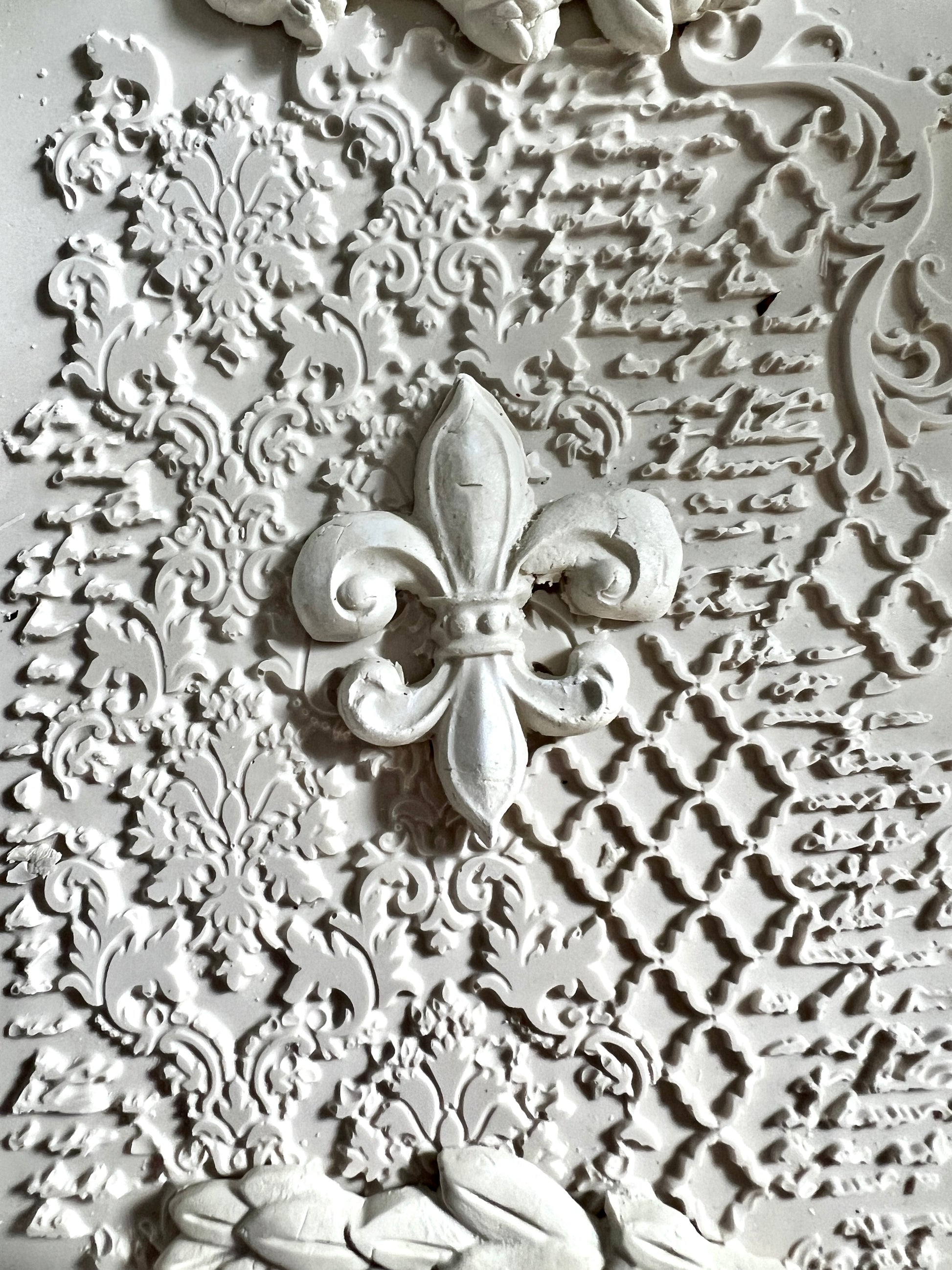The photo below shows the intricate design you can achieve with these special moulds. This was created by putting our Texture & Scripture mould into the base of a plastic container. Then pouring over a Plaster mix. When the mix was set, the plastic mould was peeled off the plaster to reveal this intricate gorgeous pattern.